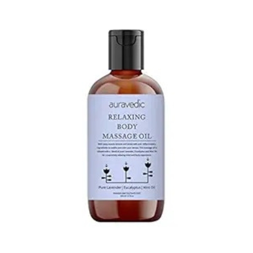 Auravedic Relaxing Body Massage Oil For Full Body Massager For Pain Relief Calming Moisturizer For Dry Skin Face 200 Ml Lavender Eucalyptus Mint Body Oil After Bath For Daily Use